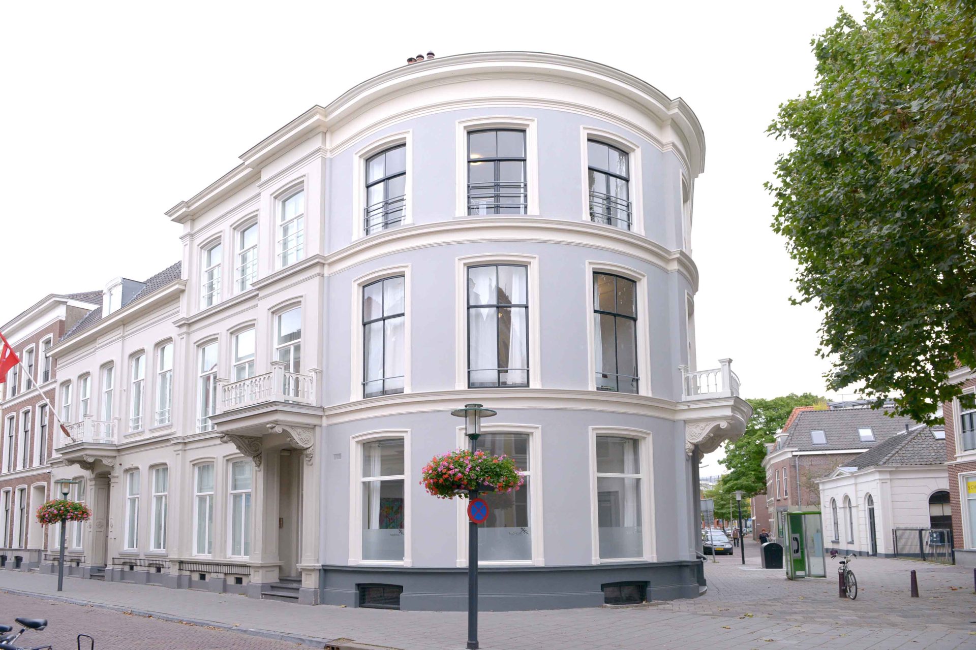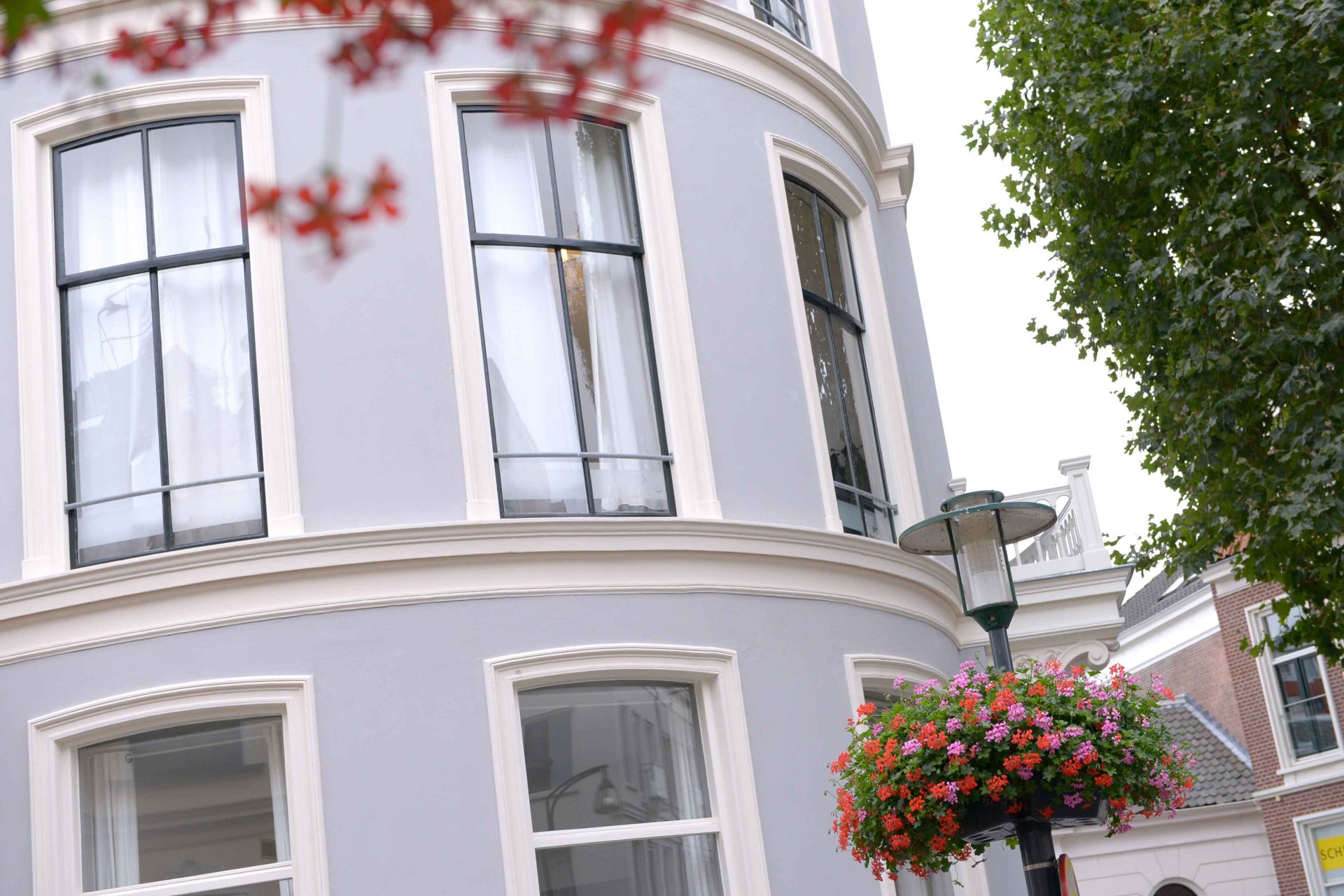 - Behoud van karakter – authentieke stucplafonds, schouwen en paneeldeuren zijn gerestaureerd; de historische kleurstelling van de gevel is teruggebracht.