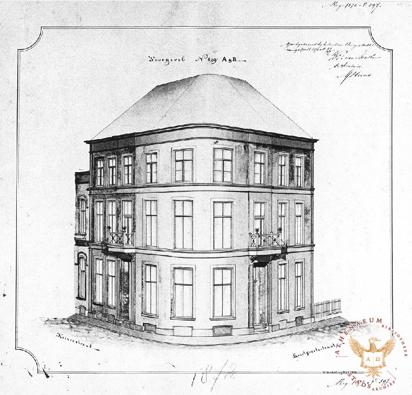 Geert Grootestraat 1 maakt deel uit van een ensemble uit circa 1873, opgezet als symmetrische straatwand op de overgang van Geert Grootestraat naar de Keizerstraat. Het hoekpand heeft een gepleisterde lijstgevel met twee risalieten en zij‑lisenen; de afgeronde hoek markeert het stadsweefsel van het 19e‑eeuwse uitbreidingsplan.